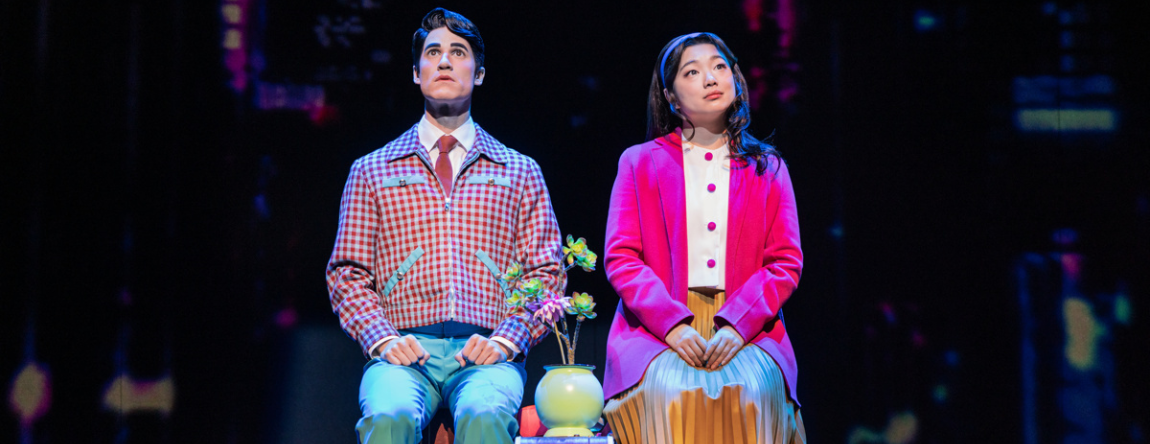 Darren Criss as Oliver and Helen J Shen as Claire in Maybe Happy Ending. ©…